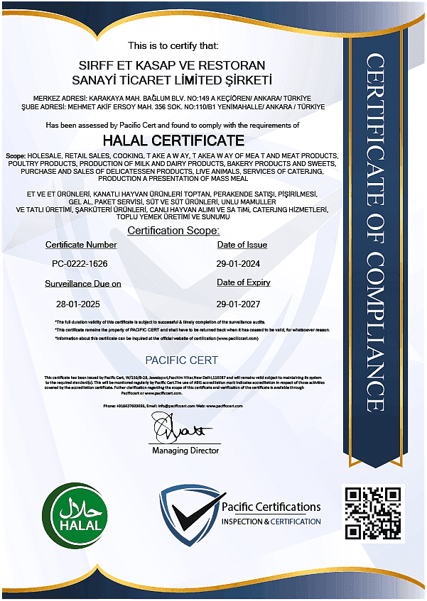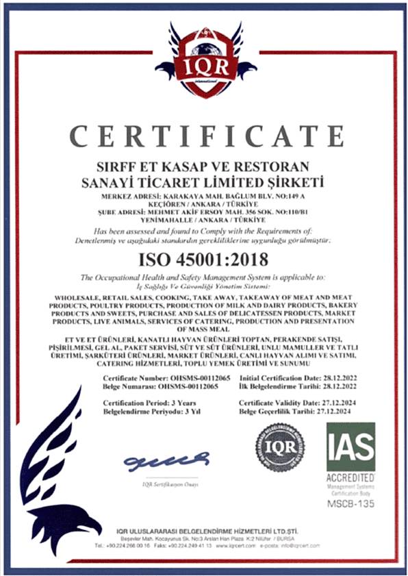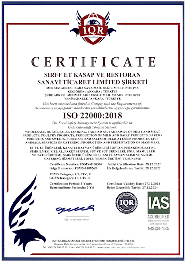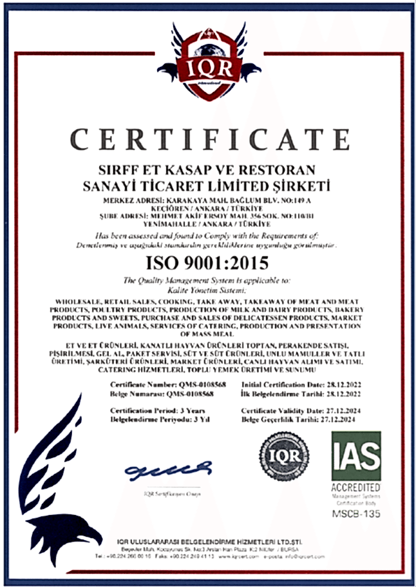 Etler ve şarküteri ürünlerimizde Kalite Sertifikalarımız var.